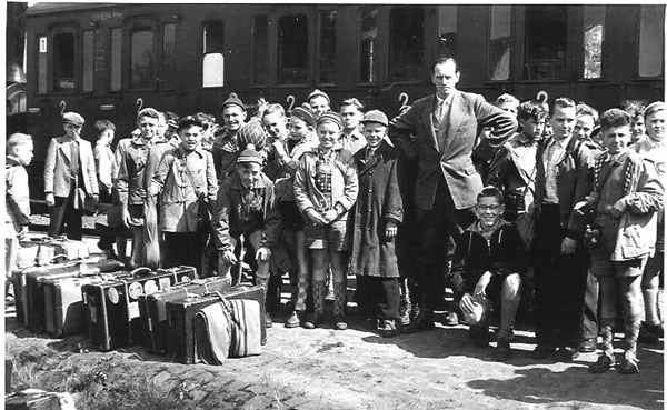 Bild: Lehrer Amann bei der Ankunft in Bad Orb / Wegscheide im Jahr 1957