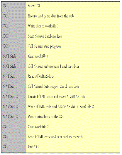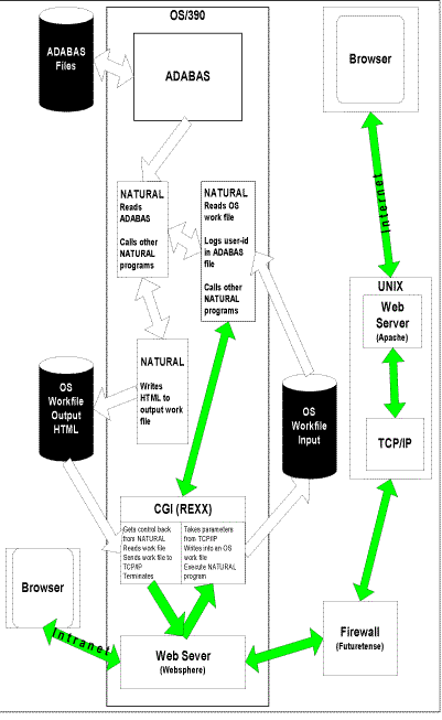 Their story began about 5 years ago. Their users were pressuring them across Canada for a GUI interface - no one wanted the 3270 "green" screen. Also they had written DOS application that was distributed to volunteers and now the volunteers were asking for a Windows version. What they did have was a VM/ESA mainframe and a lot of Natural and Construct expertise. Their solution was to adhere to a basic principle of not allowing fracturing of the database. They had been playing with writing some Natural programs that read their ADABAS database and produced work files containing HTML. They ran these jobs nightly and downloaded them to their NT Web server. When they upgraded their VM/ESA operating system they had heard about a "shareware" mainframe based Web server (WebShare for VM). They installed this Web server and have since upgraded to a commercial product EnterpriseWeb from Beyond Software (recently bought by Neon Systems). Now, their Web server and database are on the same platform (they got rid of the NT Web server). After a lot of work and growing pains they now have a very productive tool set to develop browser-based applications. Surprisingly for me, the developers pointed out a way to connect to the web without using middleware and without using a TP monitor. We discussed in detail their solution, and back in Los Angeles I had to try this solution, of course. And the results met all my expectations. For me the starting point was Natural version 2.2.8 and ADABAS version 5.2. It works with other versions too, because the solution is version independent. The question came up, how can a Natural program receive requests from the web and return ADABAS data. Since the solution should work without using a TP monitor, a web browser replaced its function. This is very inexpensive, needs very little maintenance, and the newest software (Netscape or Internet Explorer) can be downloaded from the web. Natural cannot communicate directly with a web browser. Therefore, I had to create a common gateway interface (CGI). I used a REXX procedure because the programs run on a mainframe platform. I found some CGI examples in the IBM Redbooks and it took a while to figure out the necessary job control statements for OS/390. Users from the Internet List Server SAG-L supported me with helpful examples. Basically it works like this: A single CGI (the REXX procedure) receives a request from the web via a web server. Fortunately, for my solution on the mainframe a web server already was available, WebSphere from IBM. Check your system to see if you have it installed. Originally, it was bundled with other products. Then the CGI writes parameter to work file 1 (for example Natural program and start value) and invokes a batch session in Natural. Natural starts up and reads work file 1 containing parameters from the HTML post. Natural executes the requested program to get ADABAS data and writes it together with HTML code to a second work file. After that, Natural terminates and then the CGI passes the HTML work file back to the users browser session. At this time, I had a good understanding about the CGI and the Natural programs. Let’s return back to the communication with the web. How do you call the CGI from the web and how does it send back information? In HTML code a 'form' command includes the address (URL) of the CGI script that will process the form; describes the method how to pass information (GET or POST); includes the form elements, like fields and menus; and the submit button which sends the data to the CGI script on the server. If the form receives the fields 'selection type' (type), 'first name' (first), 'last name' (last), and 'e-mail address' (email) then the HTML code with the GET method looks like this, for example: ……/cgi-bin/cgirexx.cmd?type=1&first=Dieter&last=Storr&email=dwstorr@aol.com The CGI receives the parameters and parses the single fields. PARSE VAR TYPE FIRST LAST EMAIL Now, all of the development of the Canadian organization is browser based. Most of their applications are for staff only and run in their Intranet. A few applications are written for the general public and delivered over the Internet. Their applications have a GUI front-end and are very intuitive to use. Like you, they have new staff who understand windows applications and need little training since they are already used to drop down menus, radio buttons, etc. As a developer, the applications you can deliver are very different from the 3270 interface you are used to. You now have color, sound, and pictures available. Since a Natural program is writing the HTML, you can change the look of the "screen" depending on the user - much easier then trying to play with control variables. You can (and will) make extensive uses of hyperlinks. For example, you show the user an expense total. Create a hyperlink on it and with one click the user can see the details that made up the total. Let me point out some remarkable facts. The applications are all written in Natural on the mainframe. Need to make a program change? Change the program, re-stow and move into production. Next person to access the program gets the new version. There is no client side code (other than a copy of Internet Explorer or Netscape). Using Web browsers as your user interface frees you from the software distribution problems and drastically reduces the reliability and performance issues. The mainframe Web server is fast and handles hundreds of users with no problem. All of the data is stored in ADABAS but I see no reason why this would not work with DB2 and Natural. Yes, it is Natural, a 4th generation language. Also you keep and exploit your own Natural experience and expertise. Robustness is a very important point and one many people underestimated. And at this time, you cannot beat the mainframe. Just another way to connect Natural and Adabas to the web? Try it and figure out how simple it can be! |