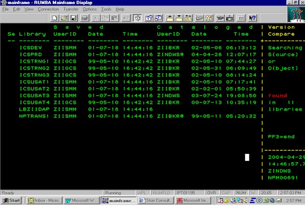 VC -- Version Compare Searches saved or cataloged objects in all NATURAL libraries, which are available on the sytem. See the display on this page. VC is also part of NAT-PAD.