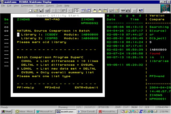 CO: Compare two sources by using IBM's SuperC program in batch (submitted job). LD: List full directory of the relevant NATURAL program (source and object). PF1: Online description of SuperC |