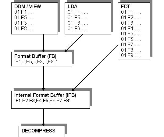 QuestionShould the field position in the format buffer or in the DDM be the same as the field position in the FDT?AnswerSteve Robinson responded that the physical positioning of simple fields should be based on frequency of use. ADABAS is field oriented, not record oriented. Thus, ADABAS must strip a record, field by field, to acquire the data it needs to send back to the calling program. ADABAS is smart enough to stop record stripping when it has data for all the requested fields. So, if you ask ADABAS for one field, and it is the last field in the record (FDT), ADABAS will have to strip the entire record in order to decompress the one field you need.By contrast, if you ask for five fields, and they are the first five in the record, ADABAS will only strip 5 fields, then return the data to you. An MU with 50 occurrences is just about as expensive to strip as 50 fields. Thus, given a single field and an MU field, the MU field would have to be used 50 times as much (assume usage of the two is always one or the other, not both) as the single field to justify placing the MU field first. Therefore, based on frequency of use, MU's and PE's are almost always found at the ends of records. It is also important, as Wolfgang Winter pointed out, when you have a spanned record that consists of 5 blocks and your format buffer (FB) includes a field from the 5th block, ADABAS must read every single block to retrieve that field because pointers to the next block are in the record header. Performance analysis by using STROBE (Compuware) showed a significant reduction in CPU time of the ADABAS modules ADANC7 (format translations) and ADANC8 (compression and decompression), when heavily used fields in a large FDT have been moved from the end to the beginning of the FDT. Graphic by Dieter Storr